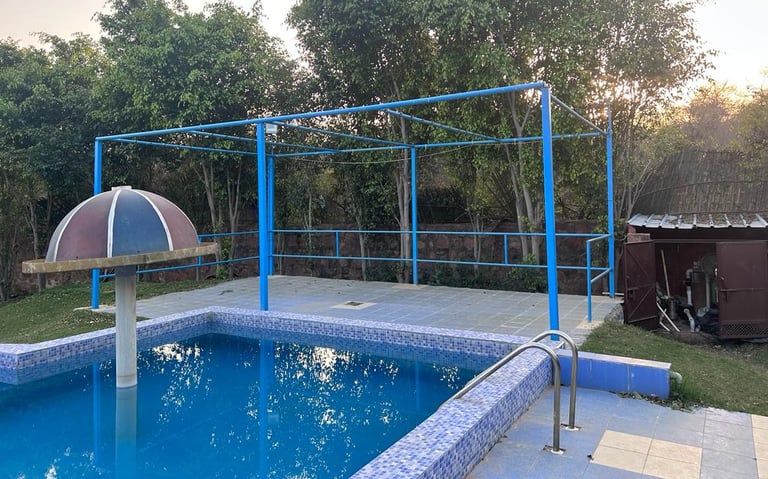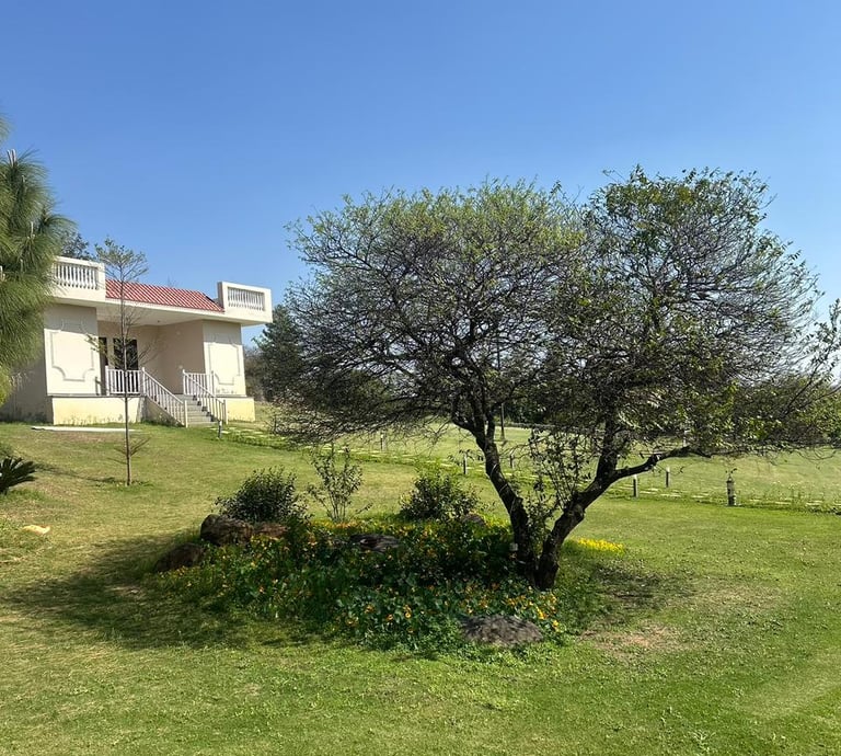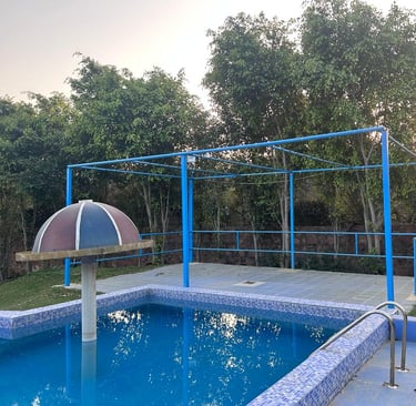 Set amidst the serene Aravalli hills, our luxurious 4BHK farmhouse offers a private escape surrounded by lush greenery and scenic views. Featuring spacious interiors, a private swimming pool, expansive lawns, and thoughtfully designed living spaces, it’s an ideal retreat for peaceful getaways, family gatherings, and intimate celebrations—where comfort meets nature